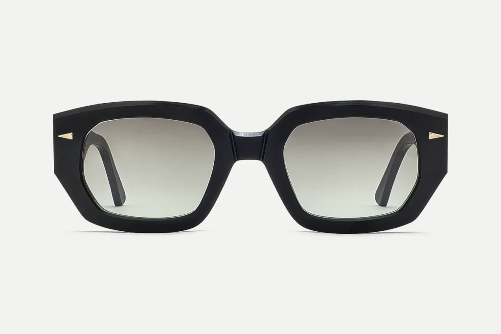 - The Acetate FrameCrafted from 8 mm matte black acetate, the piece is raw-cut with sculpted angles. It references nostalgia while being firmly contemporary. Custom geometric filigree adds ornament to its structural rigor, marrying bold presence with subtle detailing.