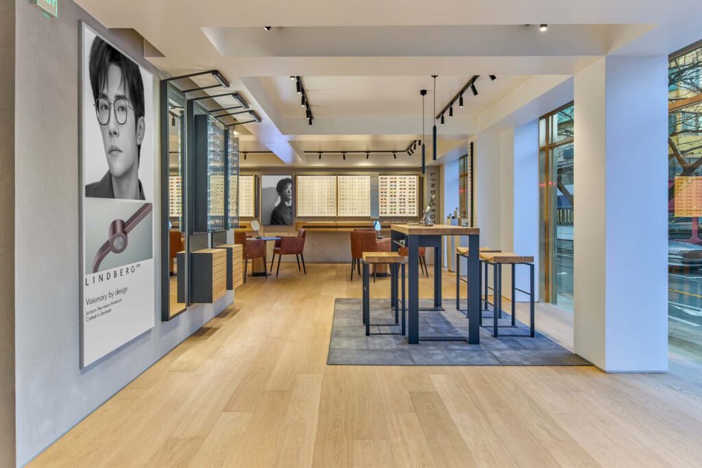 1階は、没入型のブランド体験に特化したフロアとなっている。 リンドバーグ本店. .この階層は、商品展示にとどまらず、ブランドのアイデンティティやデザイン哲学を存分に体感できる空間としてデザインされている。EDITのトーンを確立している。ソチョン:デザイン文化としてのアイウェア。.