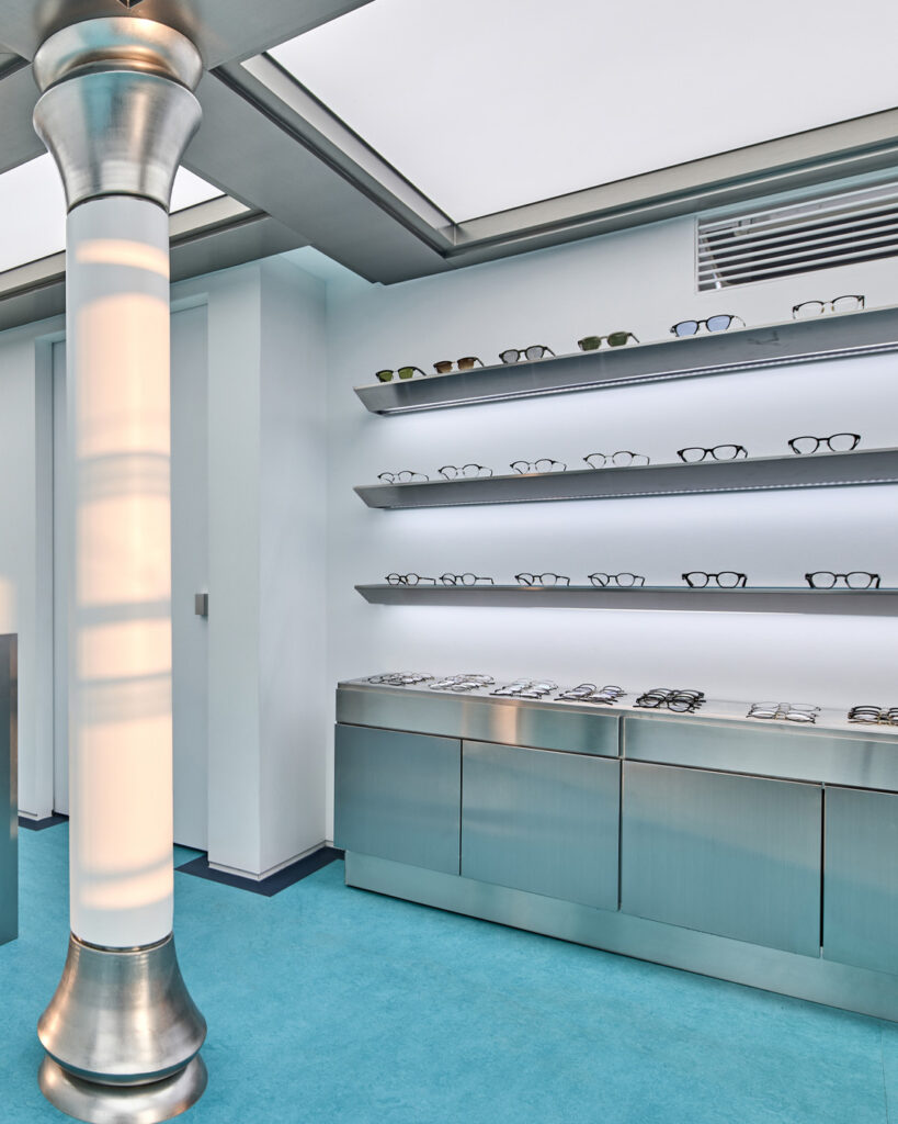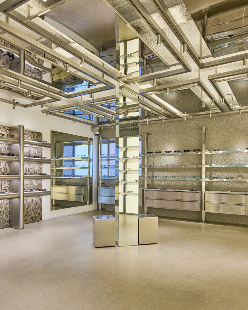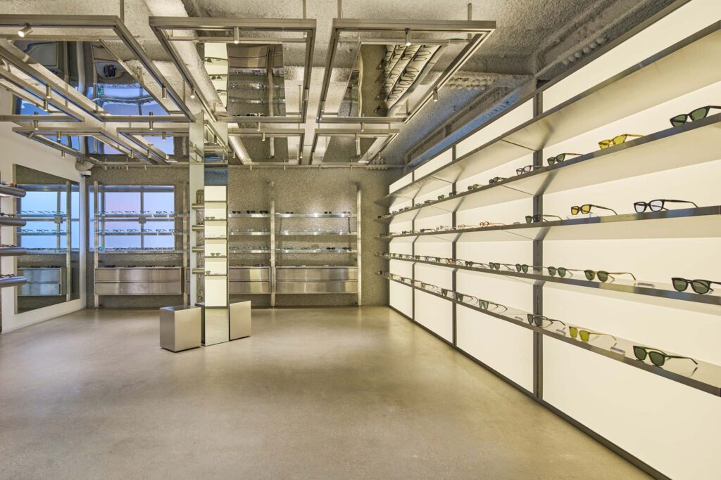 上層階は、より実験的でトレンドを意識した環境の中で、厳選されたプレミアム・アイウェア・ブランドのセレクションにシフトしている。以下のような革新的な小売業者からインスピレーションを得ています。 ジェントルモンスター, これらのフロアでは、より幅広いスタイルとライフスタイルの話題の一部としてアイウェアを探求している。.