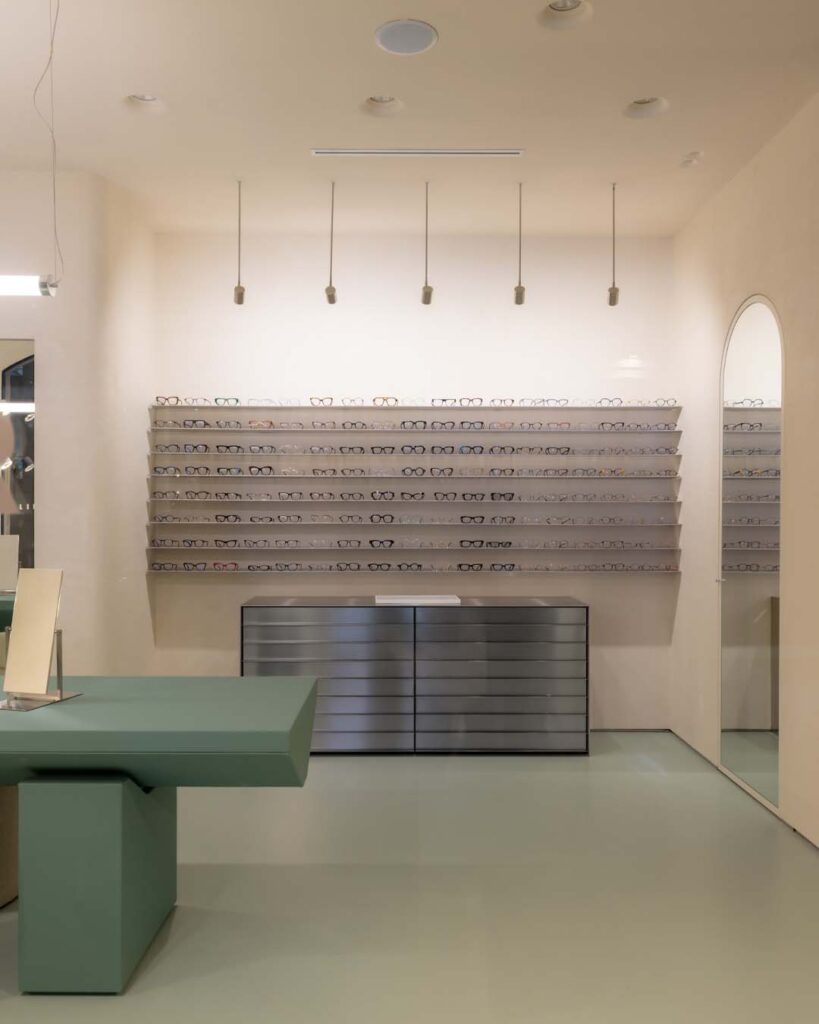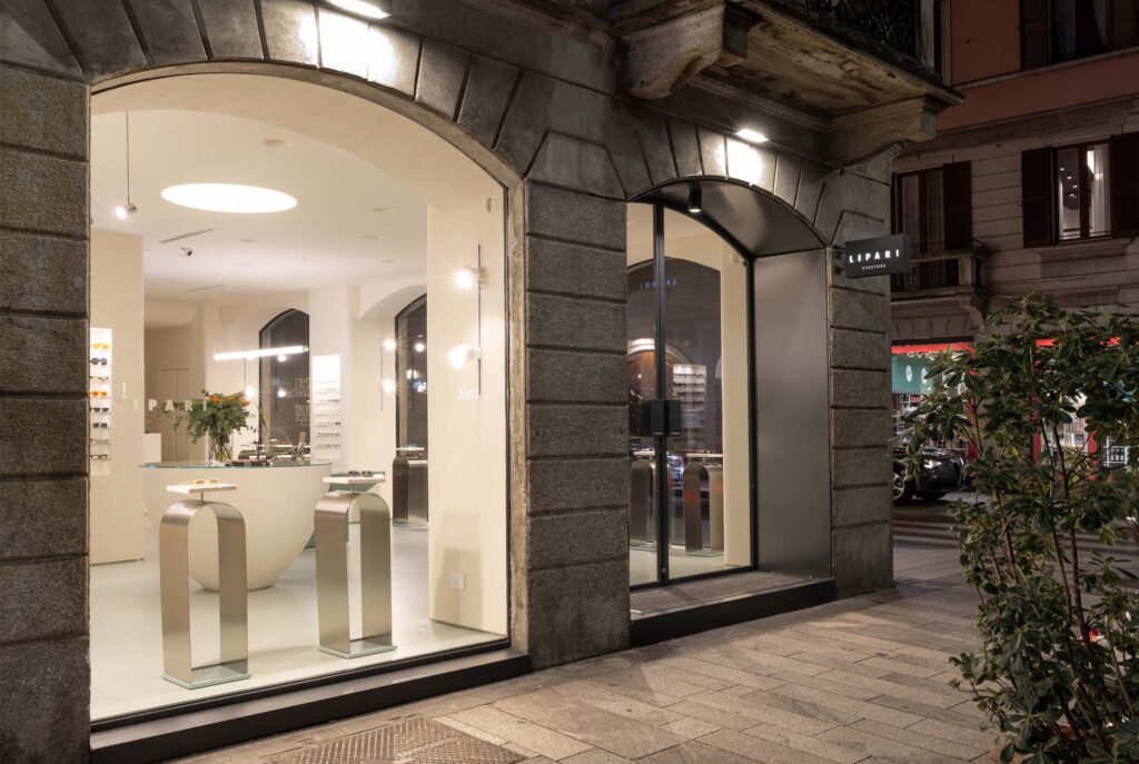 Conceived as a contemporary boutique rather than a traditional retail space, the Milan location is designed to be a place of discovery where customers engage with eyewear through a curated journey of form, material, and function. The store’s architecture emphasizes clarity and refinement: lighting, volumes, and spatial layout are carefully orchestrated to enhance the product while reflecting Lipari’s understated yet distinctive identity.